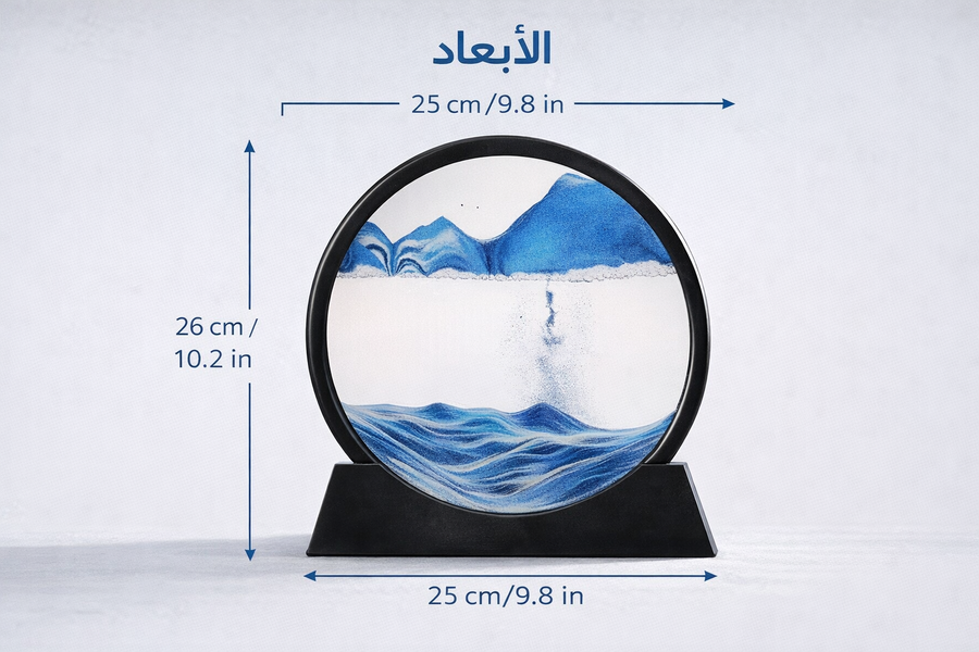 في كل مرة يتم قلب القطعة، تنساب الرمال ببطء لتكوّن مناظر طبيعية مختلفة من الجبال والأمواج والرمال المتدرجة، مما يمنحك إحساسًا بالهدوء وصفاء الذهن، ويجعل كل مشاهدة تجربة جديدة لا تتكرر.