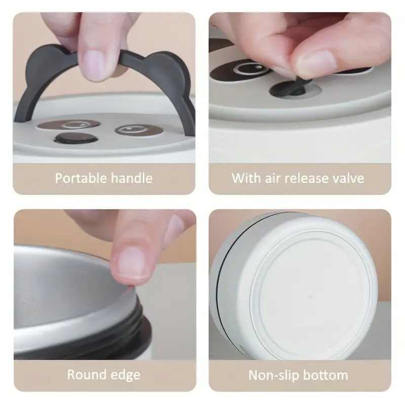 ✅ علب مدوّرة سهلة الفتح والغلق – تحط فيها رز، خضار، لحوم أو شوربة من غير ما تختلط.